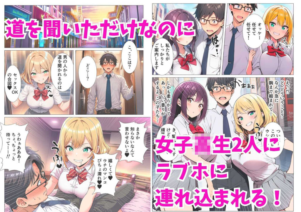 【貞操観念逆転】女子校生2人組に道を聞いたら秒でラブホに連れ込まれた話