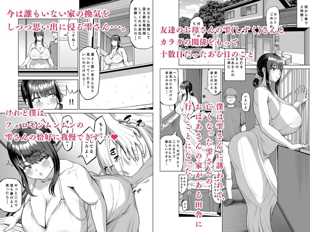 今すぐ読む!完全版を読む!友達のお母さんに誘われて・・・田舎に来ちゃいました発売日: 2024年10月1日ボリューム: 43 分ジャンル: 熟女、野外・露出、中出し、ラブラブ・あまあま、おっぱい、お尻・ヒップ、男性向け、成人向け、歳の差、潮吹き、ムチム... -