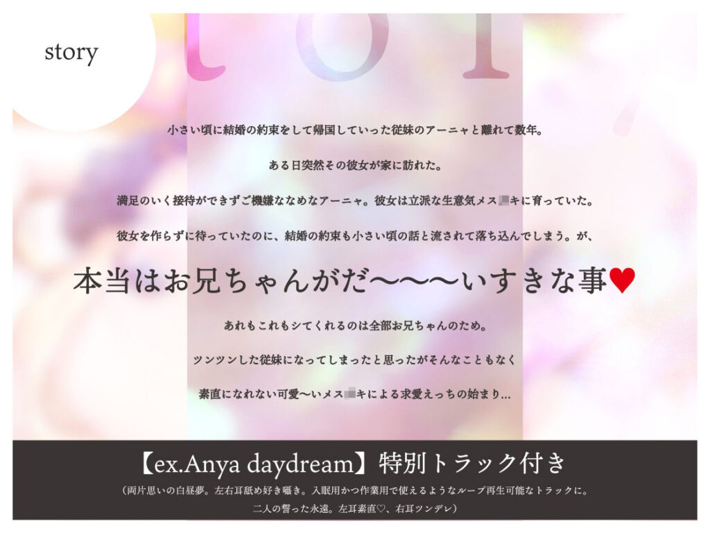 今すぐ読む!完全版を読む!生意気でメス○キなハーフロリの好意ダダ漏れ求愛えっち【特典トラック付き】発売日: 2023年2月18日ボリューム: 8本 (約118分)+αジャンル: 中出し、フェラ、オナニー、ラブラブ・あまあま、おっぱい、男性向け、成人向け、耳舐め...